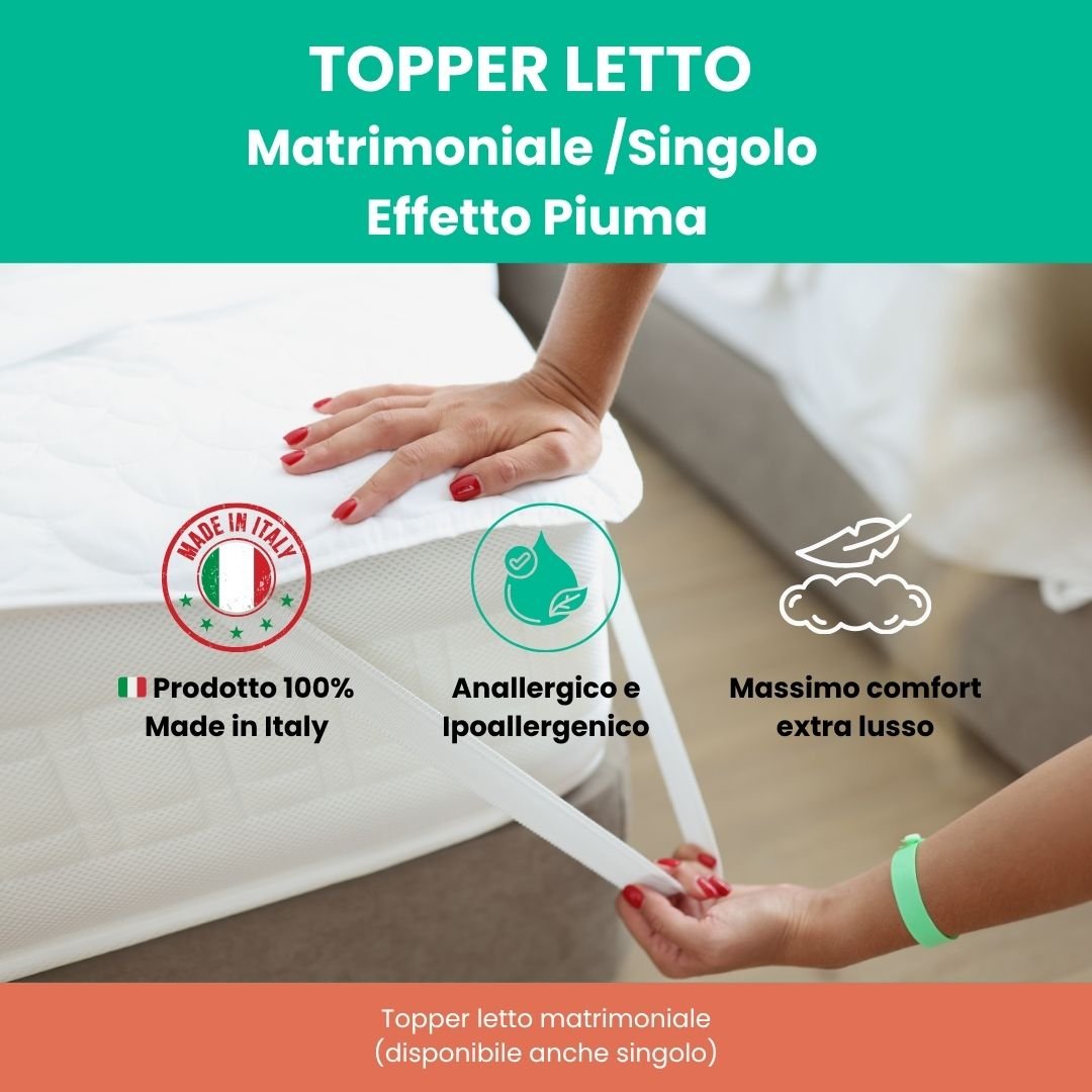 Se il tuo materasso attuale è troppo rigido, ha perso la sua iniziale comodità, o semplicemente cerchi un lusso e un’igiene extra per il tuo letto, questo topper è la soluzione che fa per te. Perfetto per chi desidera il comfort di un hotel a 5 stelle e per chi cerca una barriera protettiva anallergica tra sé e il materasso.